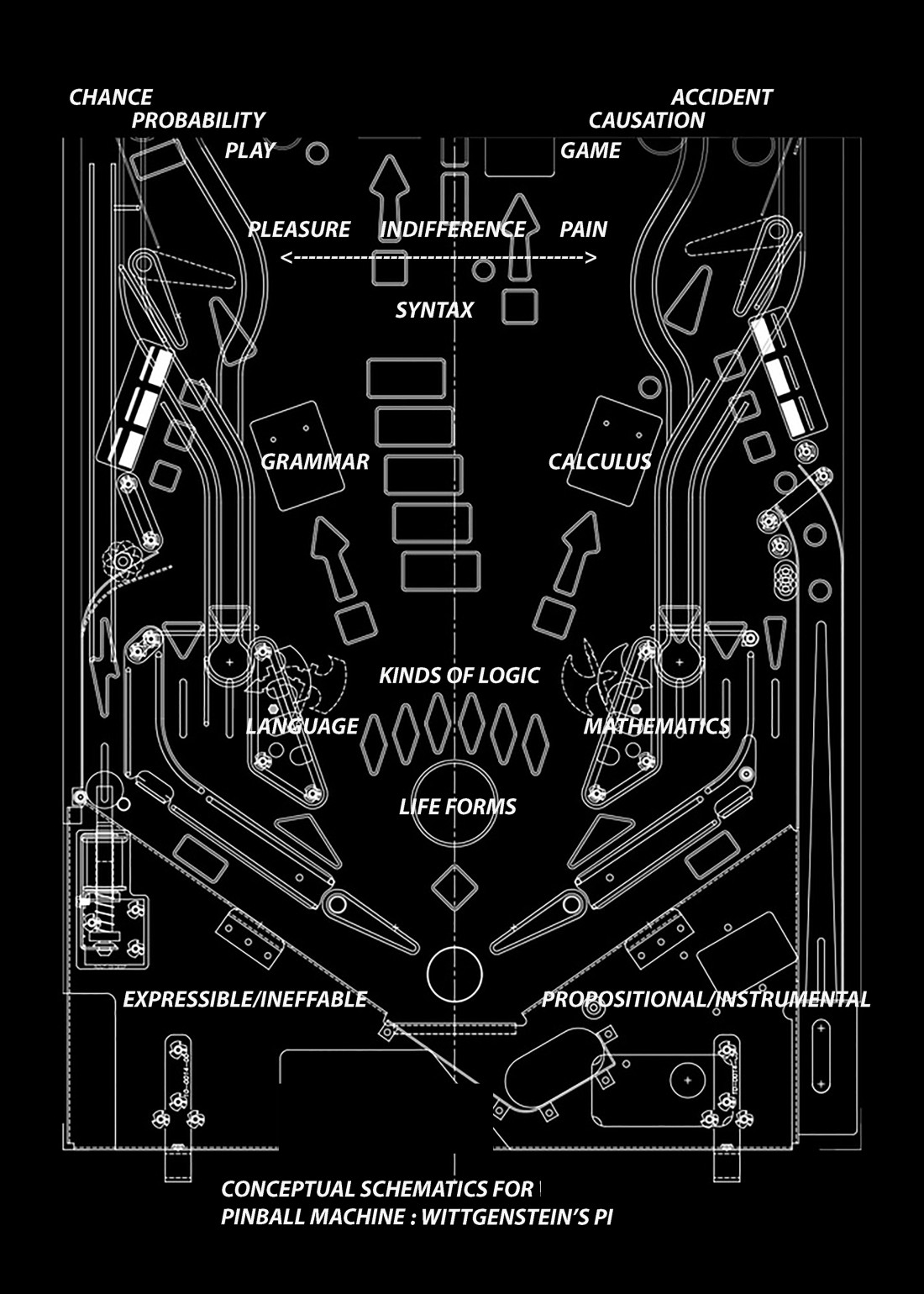 This is a first installment and a sketching of some thoughts on toy aesthetics and a design for a pinball machine inspired by Wittgenstein’s Philosophical Investigations.